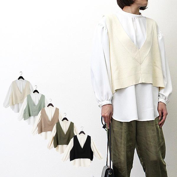 シャツ ブラウス ニットベスト セット レイヤード Vネック コーデ 春 韓国 長袖 無地 トップス レディース Sb X パーティードレス Style Block 通販 Yahoo ショッピング